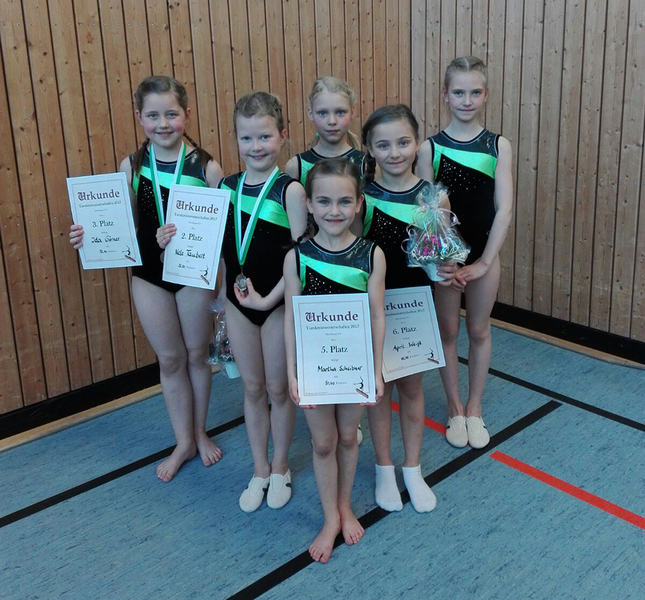 In der AK 10/11 konnten wir durch Paula Scheibner mit Platz 3 ebenfalls einen der begehrten Medaillenplätze ergattern. Marie Kroschke platzierte sich auf Rang 6. Auch diese beiden sind somit für die Bezirksmeisterschaften qualifiziert. Sophie Findeißen und Alina Wenisch gelangen leider nicht alle Übungen fehlerfrei. Sie belegten die Plätze 14 und 15 von insgesamt 22 Starterinnen.
