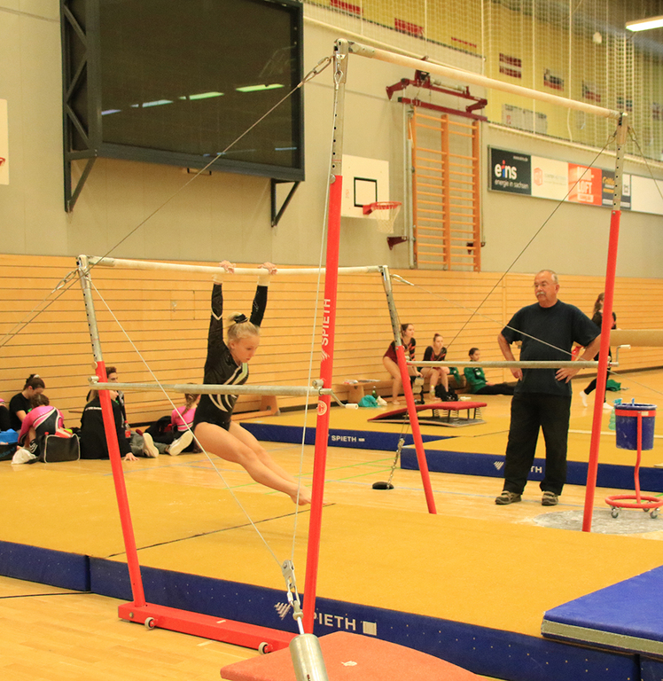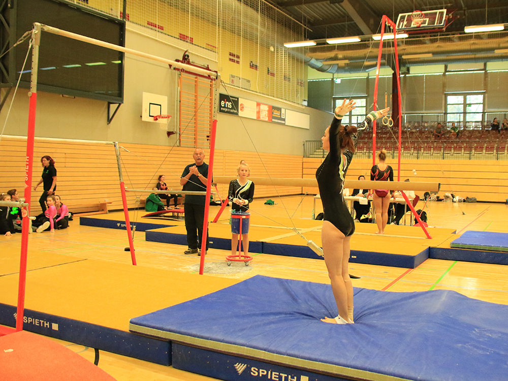 An den ersten drei Geräten (Boden, Sprung und Stufenbarren) gelangen die Übungen gut und die Mannschaft lag mit einem kleinen Vorsprung in Führung. Somit sollte wieder einmal der berüchtigte „Zitterbalken“ die Entscheidung bringen. Hier hielten die Nerven der jungen Damen dem Druck leider nicht stand und 4 der 5 Turnerinnen am Gerät mussten insgesamt 6 Mal vorzeitig das Gerät verlassen. Nach einigen bangen Minuten vor der Siegerehrung strahlten die Turnerinnen und Trainer übers ganze Gesicht als sie schließlich als Zweitplatzierte aufs Treppchen steigen konnten und somit einen der beiden Startplätze in der 2. Landesliga ergatterten.