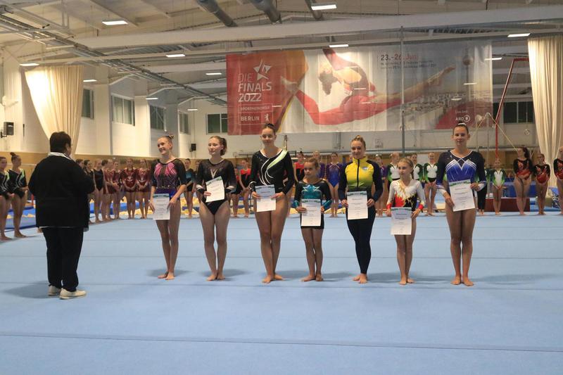 Auch in der Einzelwertung waren die LK3-Turnerinnen erneut ganz vorn mit dabei. Franziska vom Scheidt erturnte das viertbeste Einzelergebnis, Ida Görner dahinter auf 5 und Enie Hessler auf 6.