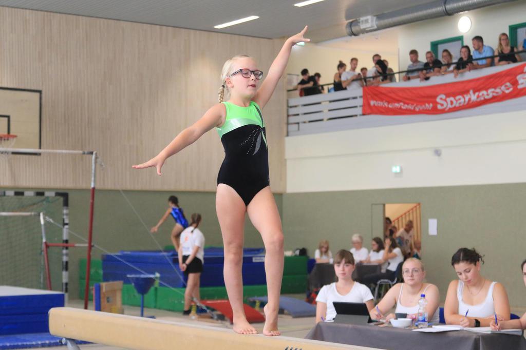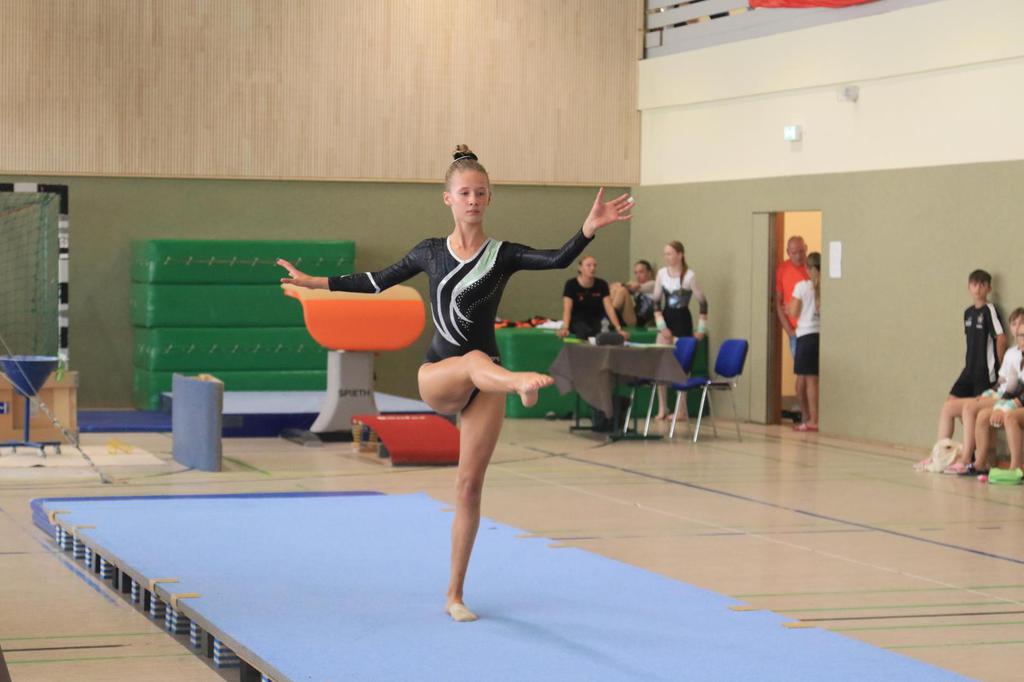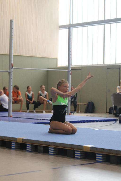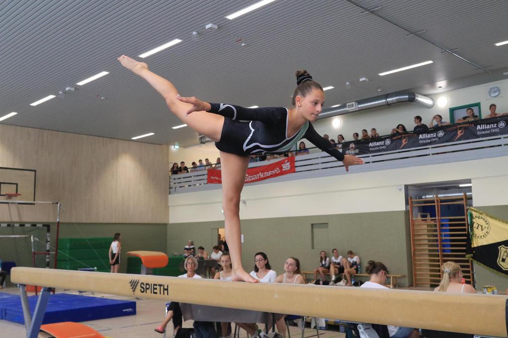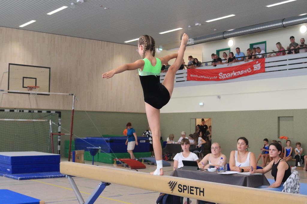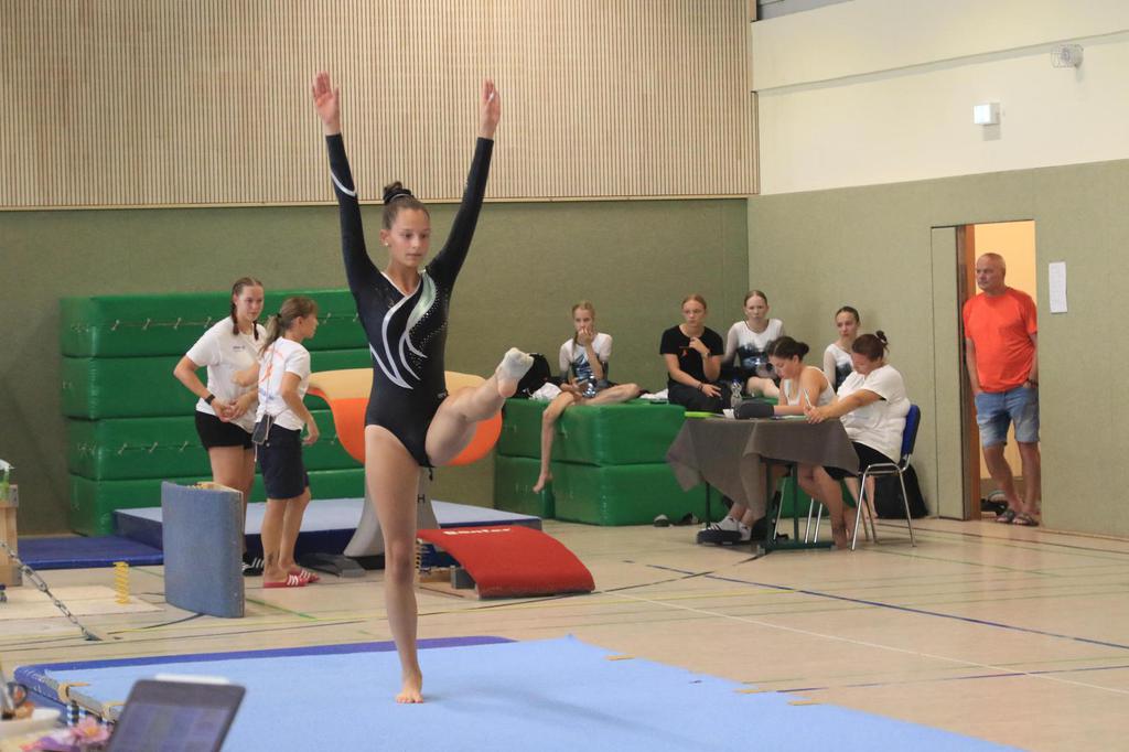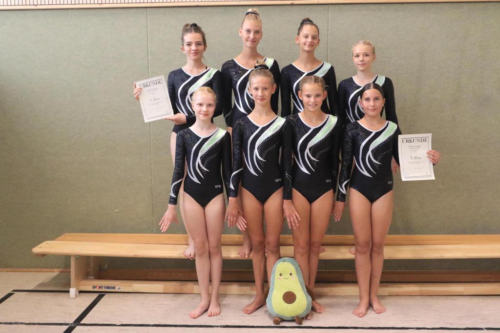 In der Kür können einer Mannschaft bis zu 8 Turnerinnen angehören, aber auch hier gehen nur 4 ans Gerät/3 kommen in die Mannschaftswertung. Damit in der Kür alle Mädchen so viele Einsätze am Gerät wie möglich bekommen und vor allem die jüngeren Mädchen weiter Wettkampferfahrung in der Kür sammeln, haben wir uns dazu entschieden unsere 8 Mädchen auf 2 Mannschaften aufzuteilen. So gingen in der LK4 bis 14 Jahre Kemi Losse, Helene Dorst, Alice Ullmann und Lotte Pliz an den Start. Die Mannschaft LK4 altersoffen bestand aus Lea Günther, Klara Schubert, Leonie Pfuhl und Elly Gauser. Beide Mannschaften konnten sich mit einer geschlossenen Mannschaftsleistung durchsetzen und den Sieg erturnen.