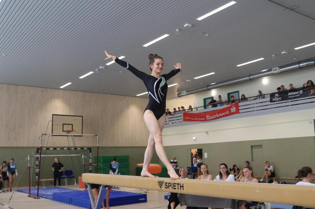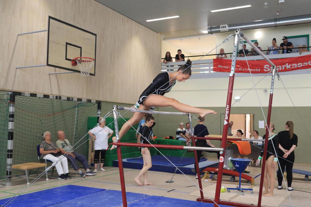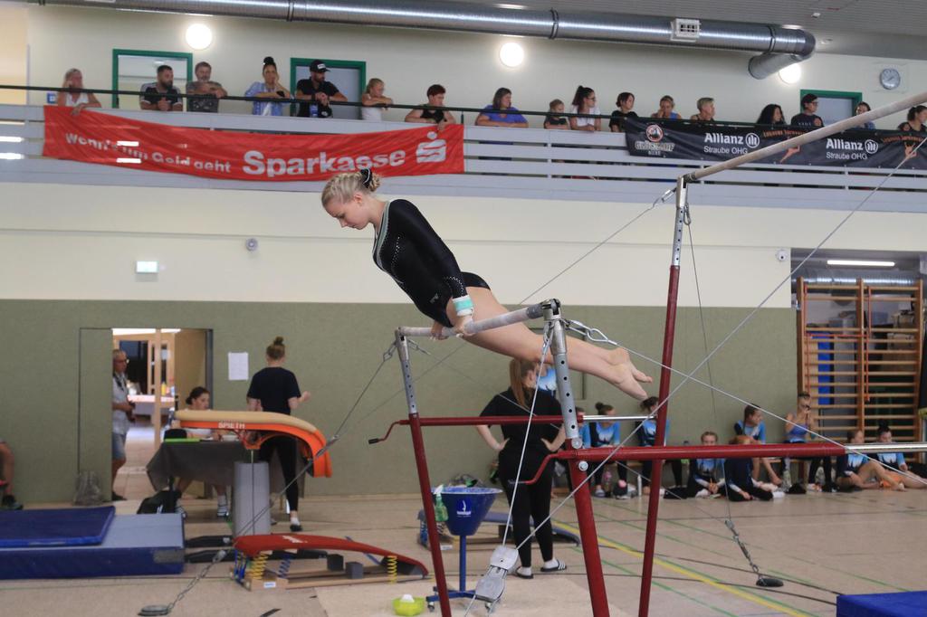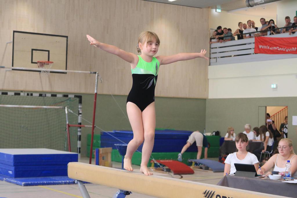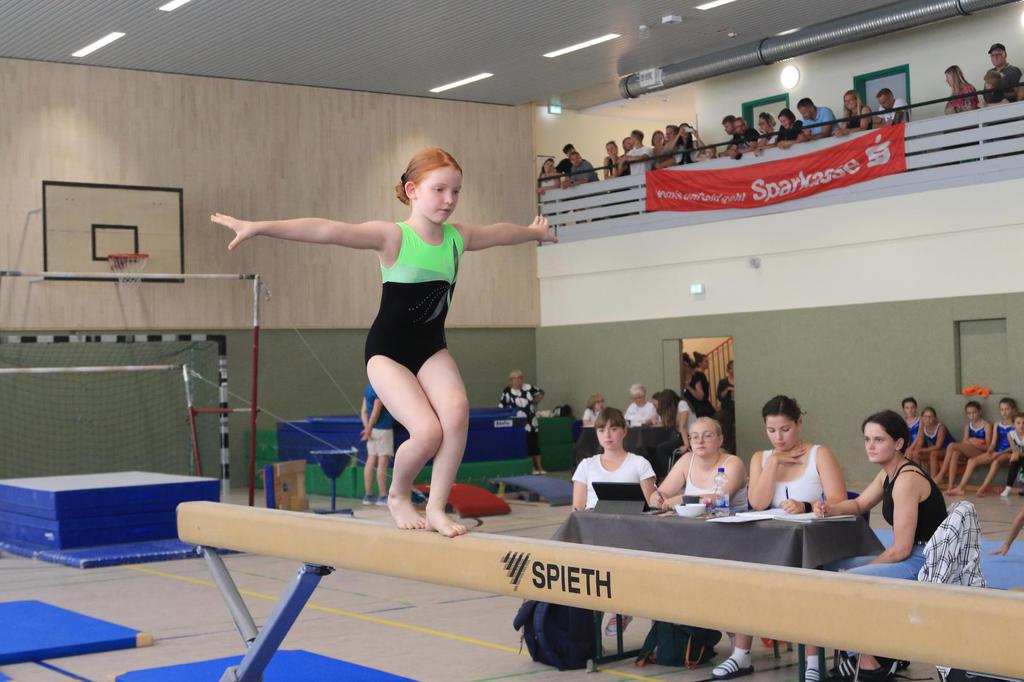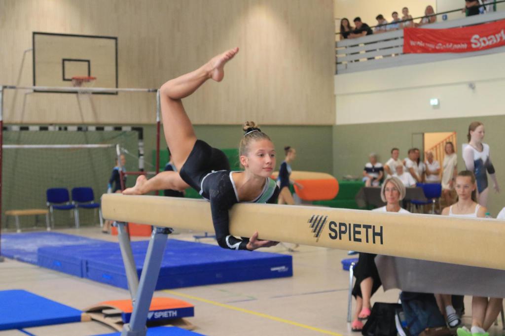 In der Kür können einer Mannschaft bis zu 8 Turnerinnen angehören, aber auch hier gehen nur 4 ans Gerät/3 kommen in die Mannschaftswertung. Damit in der Kür alle Mädchen so viele Einsätze am Gerät wie möglich bekommen und vor allem die jüngeren Mädchen weiter Wettkampferfahrung in der Kür sammeln, haben wir uns dazu entschieden unsere 8 Mädchen auf 2 Mannschaften aufzuteilen. So gingen in der LK4 bis 14 Jahre Kemi Losse, Helene Dorst, Alice Ullmann und Lotte Pliz an den Start. Die Mannschaft LK4 altersoffen bestand aus Lea Günther, Klara Schubert, Leonie Pfuhl und Elly Gauser. Beide Mannschaften konnten sich mit einer geschlossenen Mannschaftsleistung durchsetzen und den Sieg erturnen.