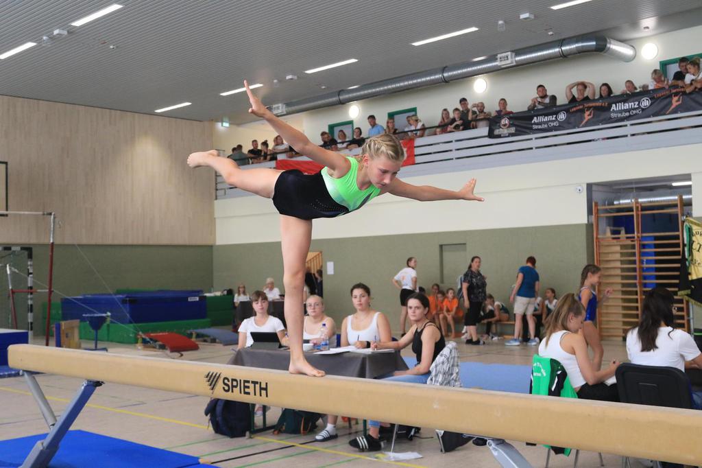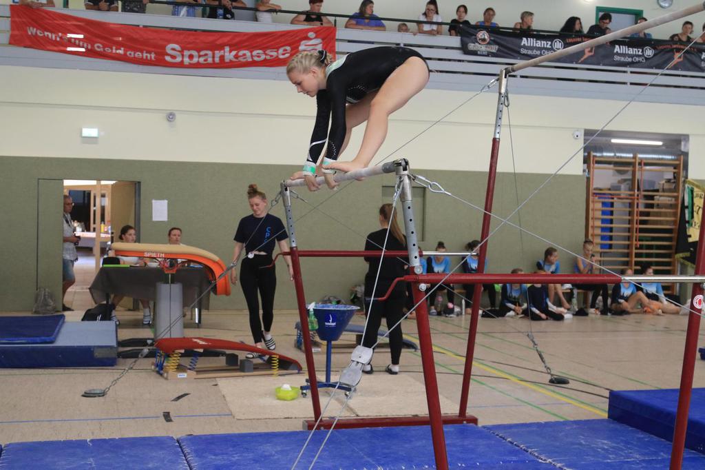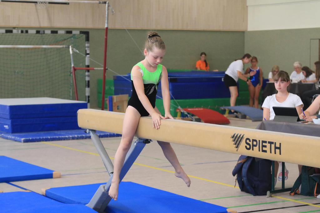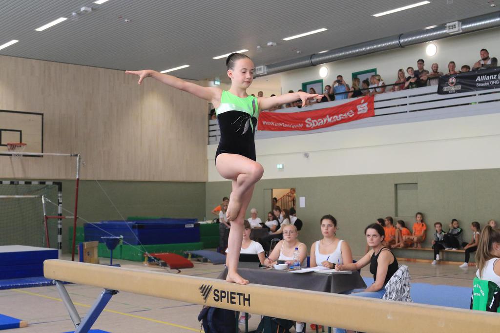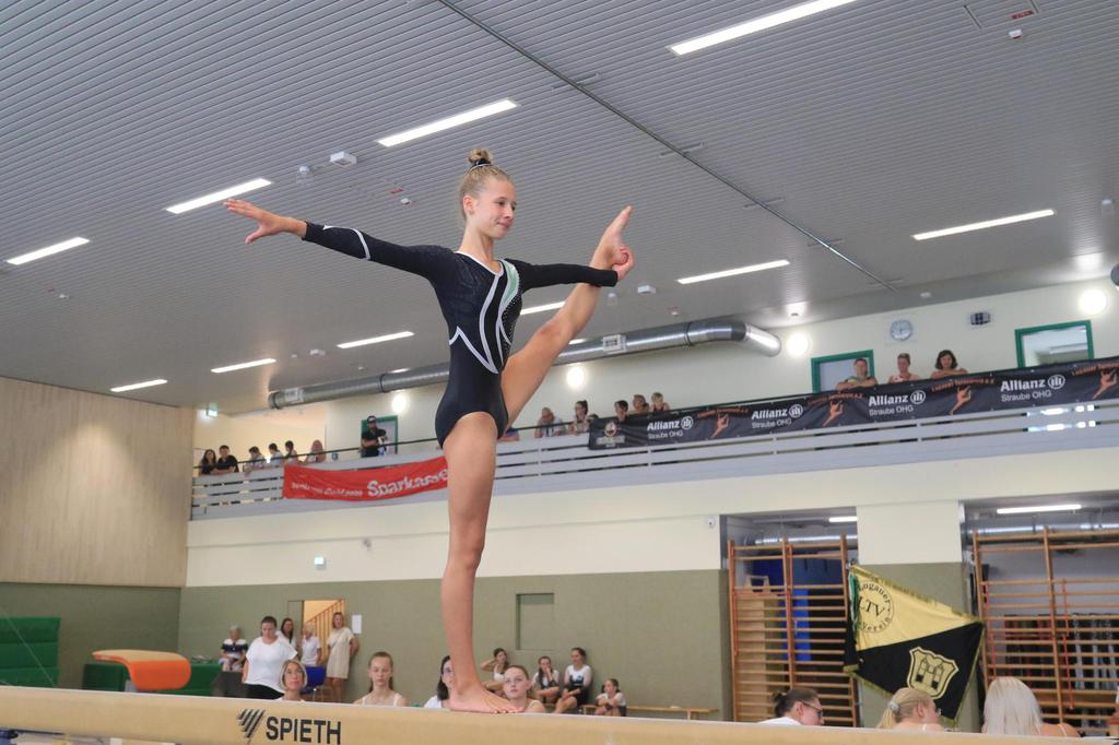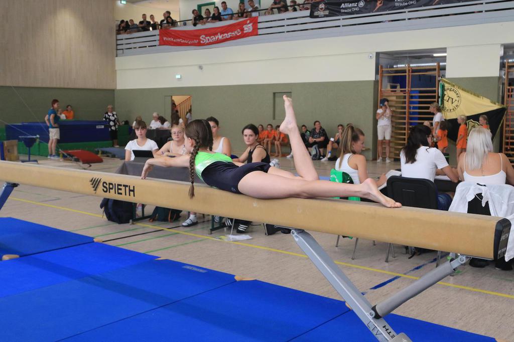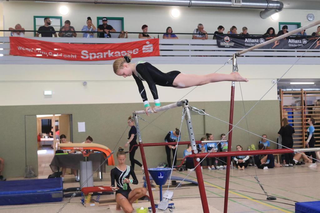 In der Kür können einer Mannschaft bis zu 8 Turnerinnen angehören, aber auch hier gehen nur 4 ans Gerät/3 kommen in die Mannschaftswertung. Damit in der Kür alle Mädchen so viele Einsätze am Gerät wie möglich bekommen und vor allem die jüngeren Mädchen weiter Wettkampferfahrung in der Kür sammeln, haben wir uns dazu entschieden unsere 8 Mädchen auf 2 Mannschaften aufzuteilen. So gingen in der LK4 bis 14 Jahre Kemi Losse, Helene Dorst, Alice Ullmann und Lotte Pliz an den Start. Die Mannschaft LK4 altersoffen bestand aus Lea Günther, Klara Schubert, Leonie Pfuhl und Elly Gauser. Beide Mannschaften konnten sich mit einer geschlossenen Mannschaftsleistung durchsetzen und den Sieg erturnen.